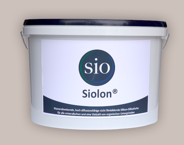 Siolon® Sandbeige vereinigt die herausragenden Eigenschaften der Silikat- und Silikonharzfarben in einer mit Wasser verdünnbaren Fassadenfarbe. Als stabilisierende Silikatfarbe besteht Siolon® Sandbeige aus Kaliwasserglas, kaliwasserglasbeständigen mineralischen Füllstoffen, lichtbeständigen Pigmenten, sowie Silikonharzen.