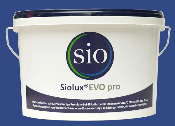 Siolux® EVO pro Stahlblau ist für alle üblichen Innenwand- und Deckenflächen geeignet und insbesondere auch für sensible Bereiche, in z.B. Kindergärten, Schulen und Krankenhäusern empfehlenswert. Auch für die Gestaltung von Innenräumen mit schwierigen Lichtverhältnissen und besonders hohen Anforderungen an Farbintensität eignet sich Siolux® EVO pro Stahlblau hervorragend. Die Innen-Silikatfarbe kann gestrichen, gerollt oder auch mit einem Airlessgerät gespritzt werden.